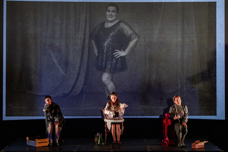 Kaderleri ve kişilikleri yaşadıkları tarihsel dilimlere göre şekillenen bu üç kadın, kimi zaman azınlık olmanın, kimi zaman erkekler dünyasında var olmaya çalışmanın, kimi zaman sadece sevilmek ihtiyacının mücadelesini veriyor. Her karakterin kendi dışlanma hikayesine tanıklık ettiğimiz oyun, bir yandan “öteki” kavramına çok boyutlu bir bakış getiriyor, öte yandan Türkiye’nin farklı dönemlerinde kadın olma hallerini de mizahi bir dille takip ediyor. Sahnede yaratılan dinamik anlatı evrenine, bu anlatıyı tamamlayan, yapay zeka ile üretilmiş bir fotoğraf evreni eşlik ediyor.